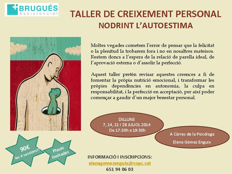 A continuació us passo la informació completa del programa del taller, així l’horari, el lloc on es realitzarà i el cost. També el linkweb des d’on podreu realitzar les vostres inscripcions